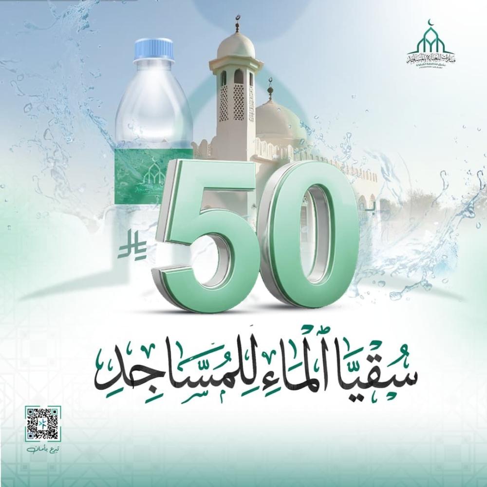 بـ ٥٠ ريال اسقِ المصلين بأفضل صدقة هي صدقة سقيا الماء في الدين